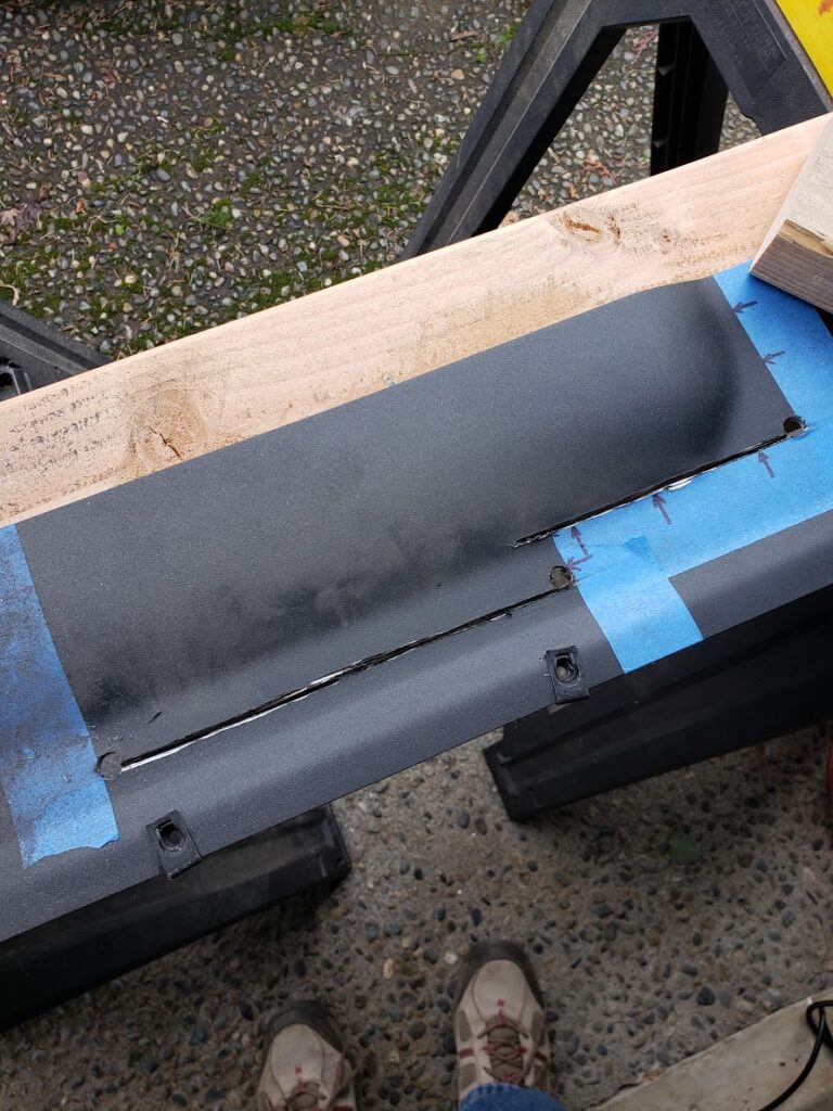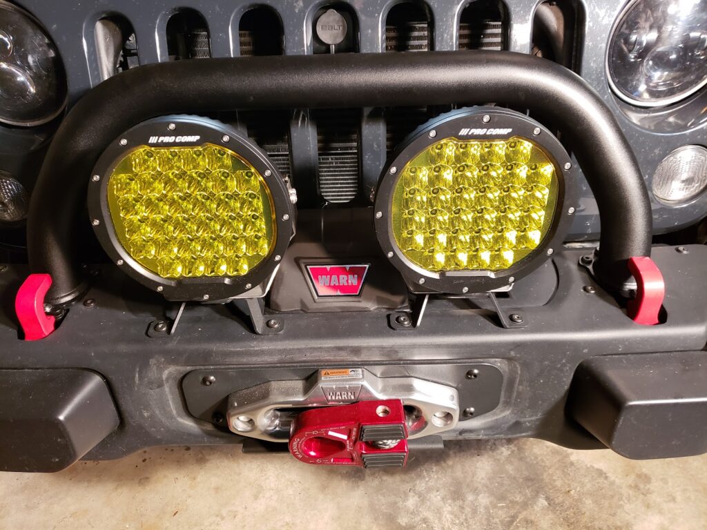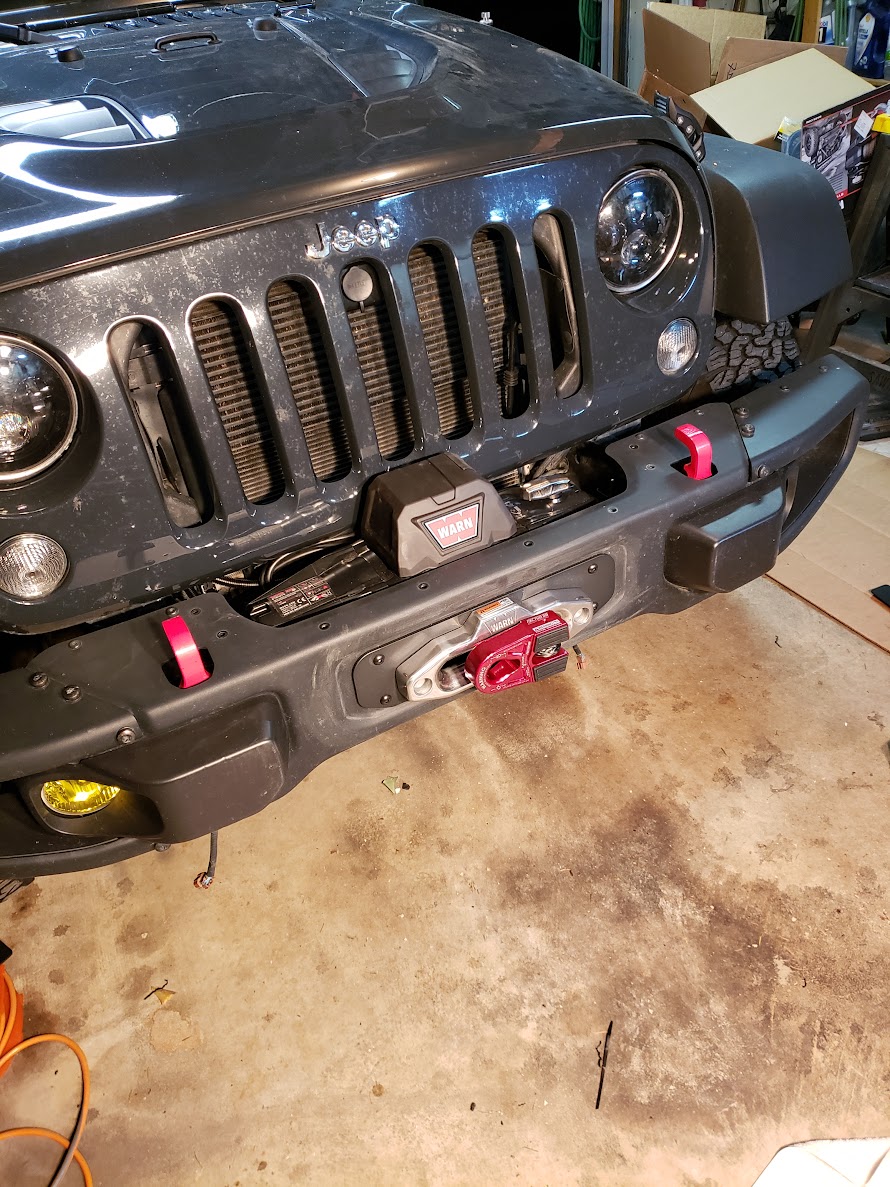 I made a cardboard template to test fit around the winch. Then I transposed the layout onto the bumpers winch delete plate.