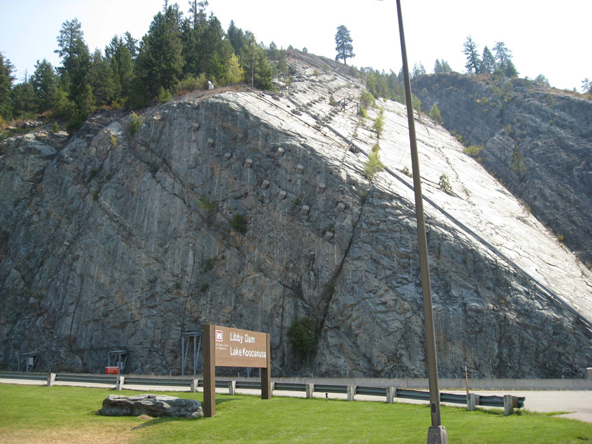 avalanches. The park had haze over the mountains and you could smell the aroma of the southern fires. The rivers and granite mountains are huge but the highlight is the Going to the Sun road. Its cut into the mountains and is windy and narrow. In 1932 it was quite a feat to build. We did see a ram sheep walk on the side of the road and then as we drove out many cows and again horses on and in the road as we headed for E.