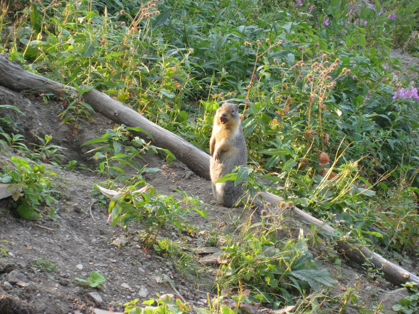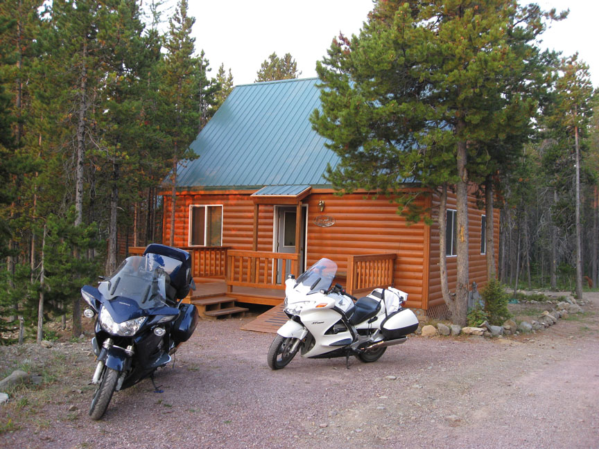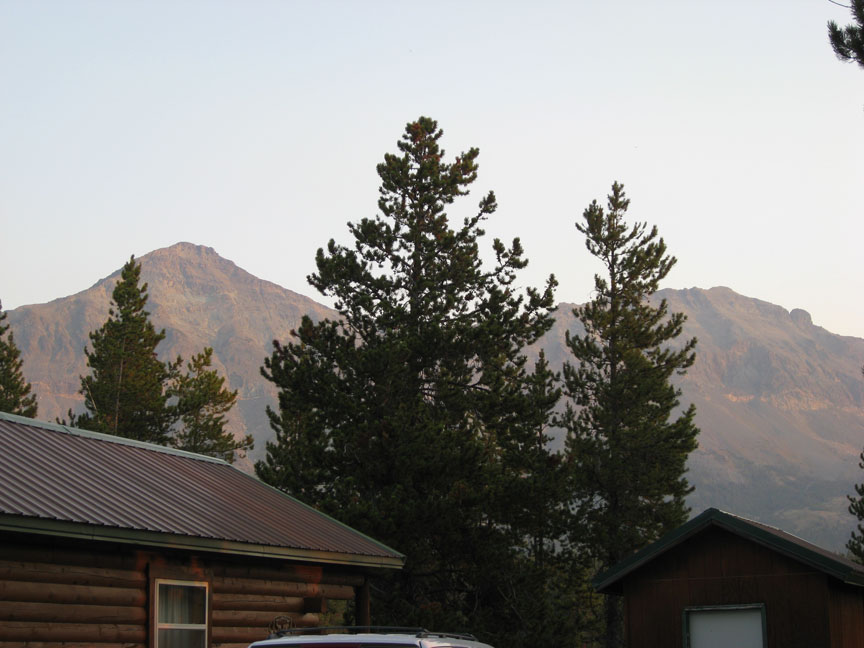 The most vivid sight was the blood red sun setting and the burned ridge of forests at St Marys which up close is a very strange scene. In some spots the highway had black soot where the fire jumped over the road. The cabins at Summit Station were up the road from the great Glacier Park Lodge built by the Union Pacific railroad owner for tourists to the park. Our cabin was in a grove but about 400 yards from the main east-west tracks with 35 trains going by per day. We had some drinks on the deck and watched some trains but we were so tired that we took some of Allan’s great sleeping pills and went right to sleep. Paul said he had to sleep on the couch because my snoring I guess was loud or so he claims! Lots of elk and deer heads in the cabins and Allan and Adam had a black bear stuffed and mounted in the cabin.