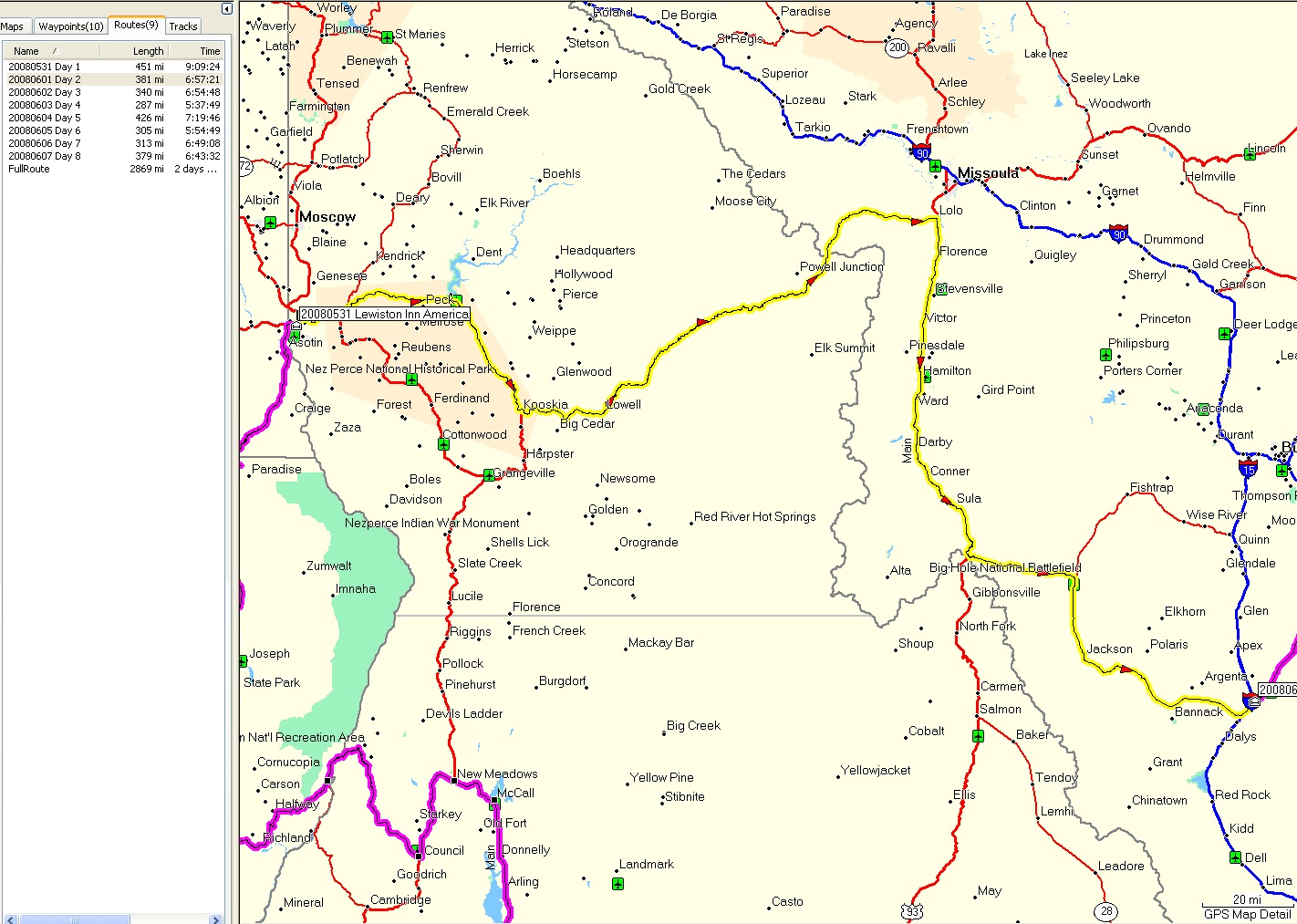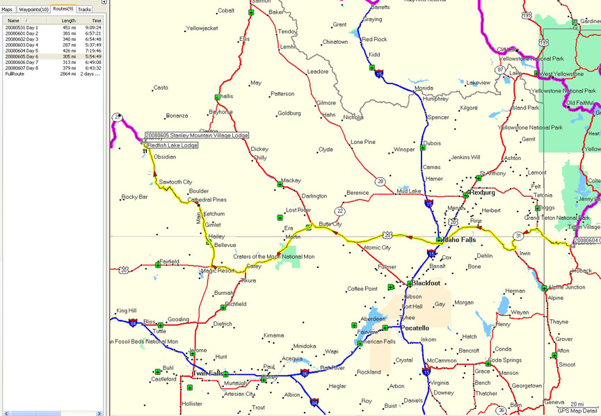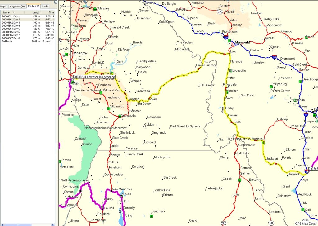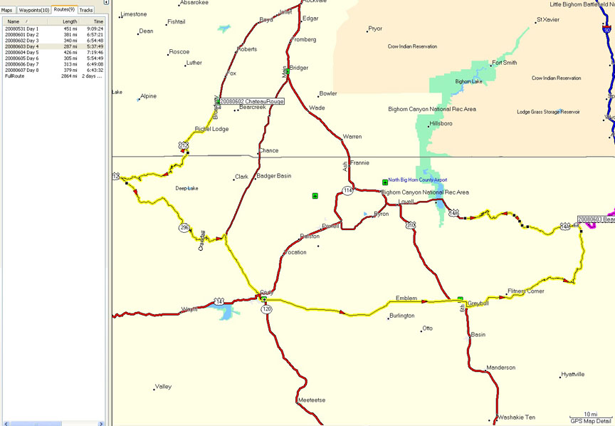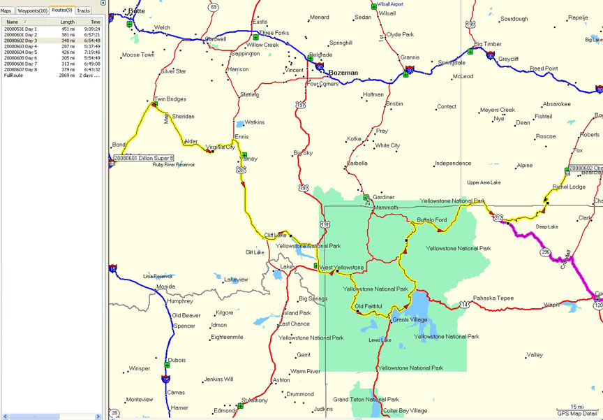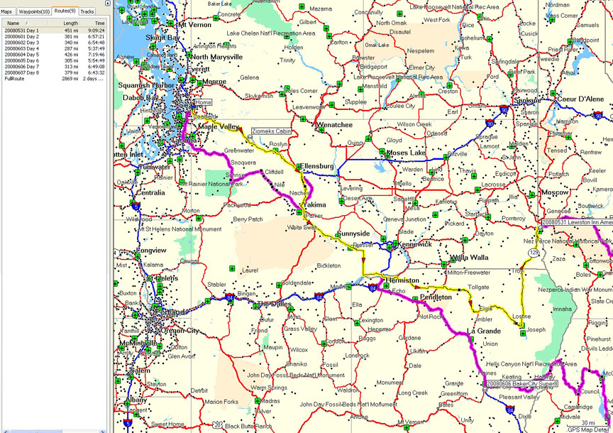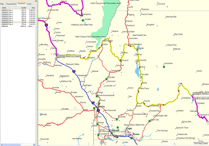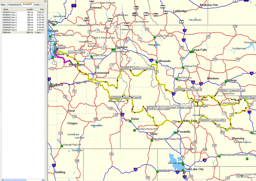 Complete Route – 2869 miles – May 31 to June 7, 2008
