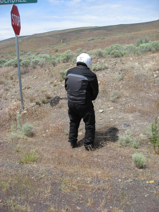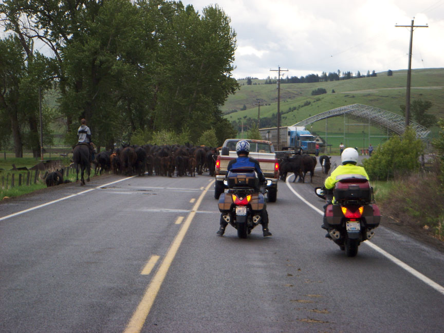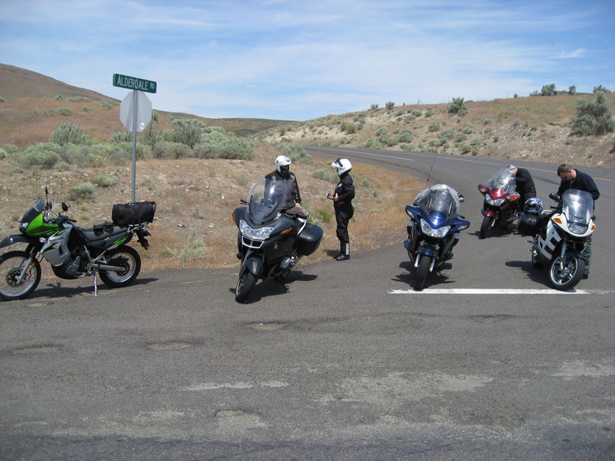 We met up in Cle Elum on a sunny morning and rode off down thru the Yakima canyon road to Toppenish then to Athena , Oregon. We stopped there for a break and lady was handing out Kiwanis bike rally fliers for Pendleton, more on this later. We then down drove to Enterprise before we had some light rain and cool temps but you could smell the grass and sagebrush. In those canyons we had to be a bit careful with the wet rode so Greg and I hung back and tested his knobby tires on the KLR 650 and me on the Z6 Metzlers to see their stickiness. The Z6’s are great and we had a nice ride anyway. Great stop for a Mexican dinner in Lewiston and a rest was needed for day 2.