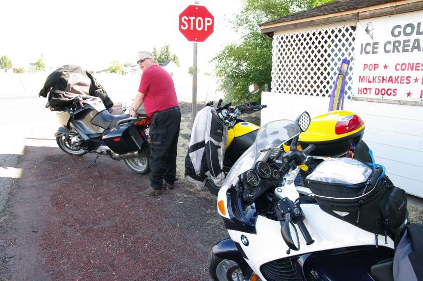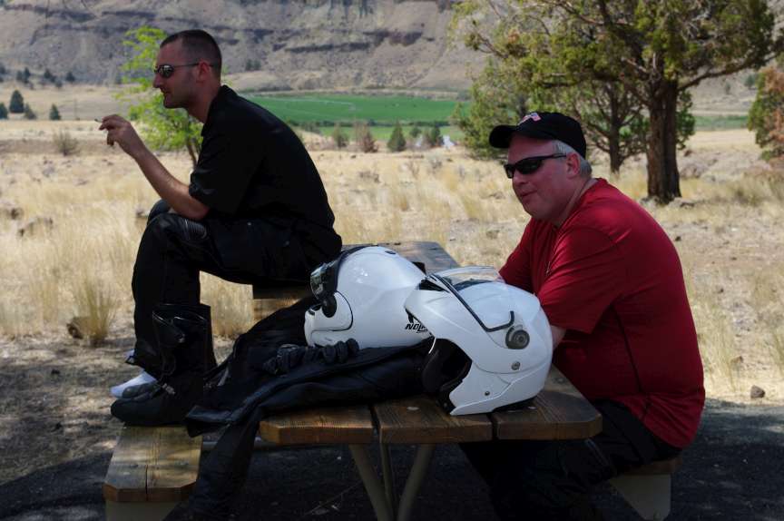 On Sunday we left the Dalles and had a great ride eat of the Columbia where Radek left us to go home and we went down the Wasco Canyon Rd to Antelope then John Day and to Burns Or. The road especially up the canyon from John Day was great, weather was hot but we missed rain by the time we got in. Had a forgettable meal at RJ Drive In.