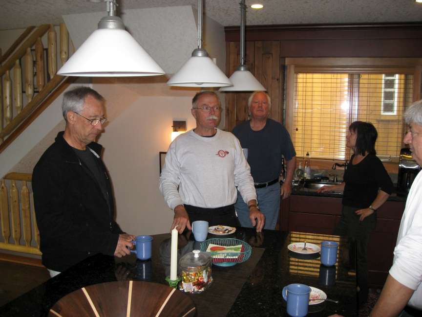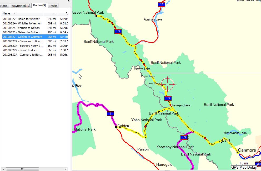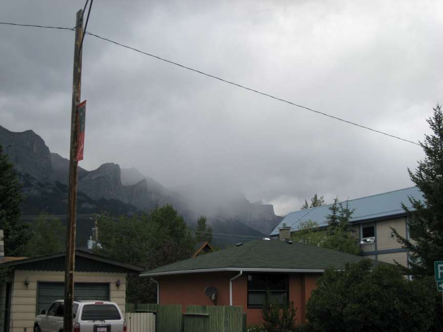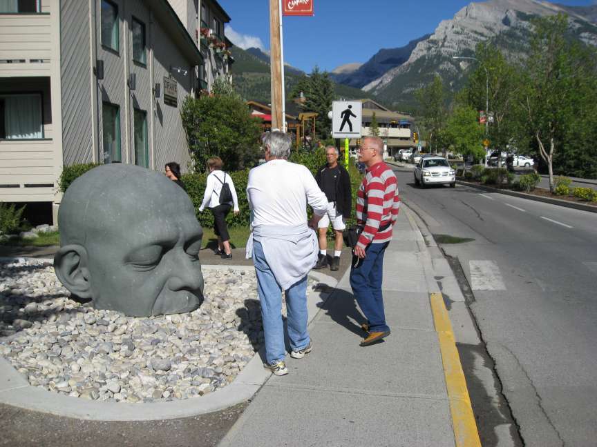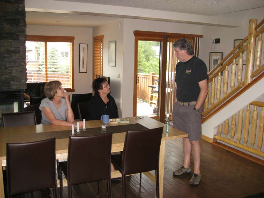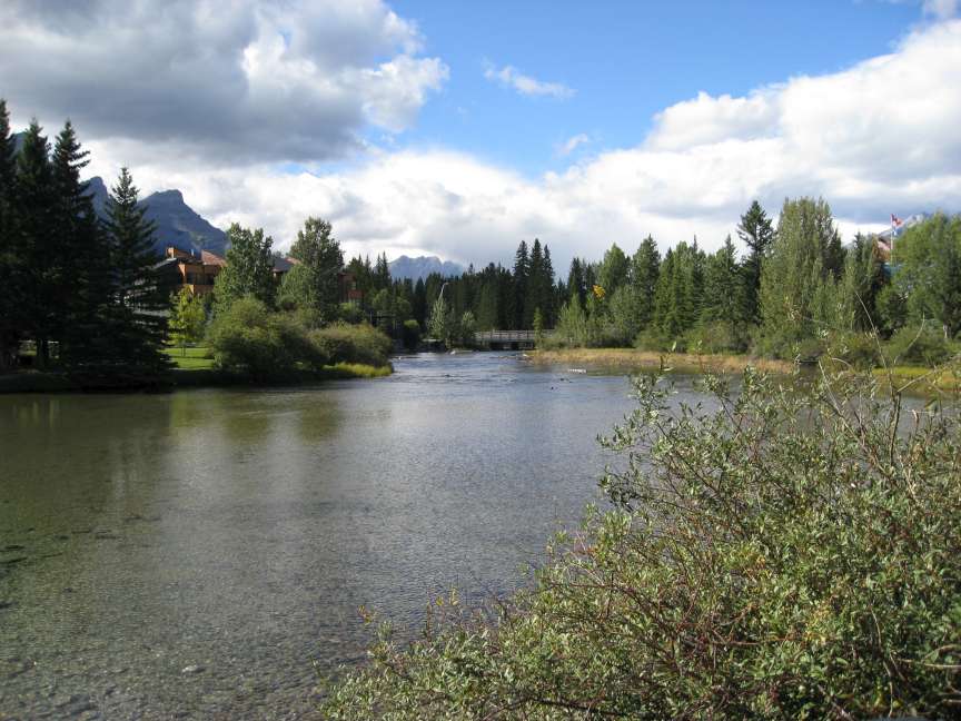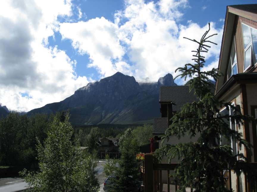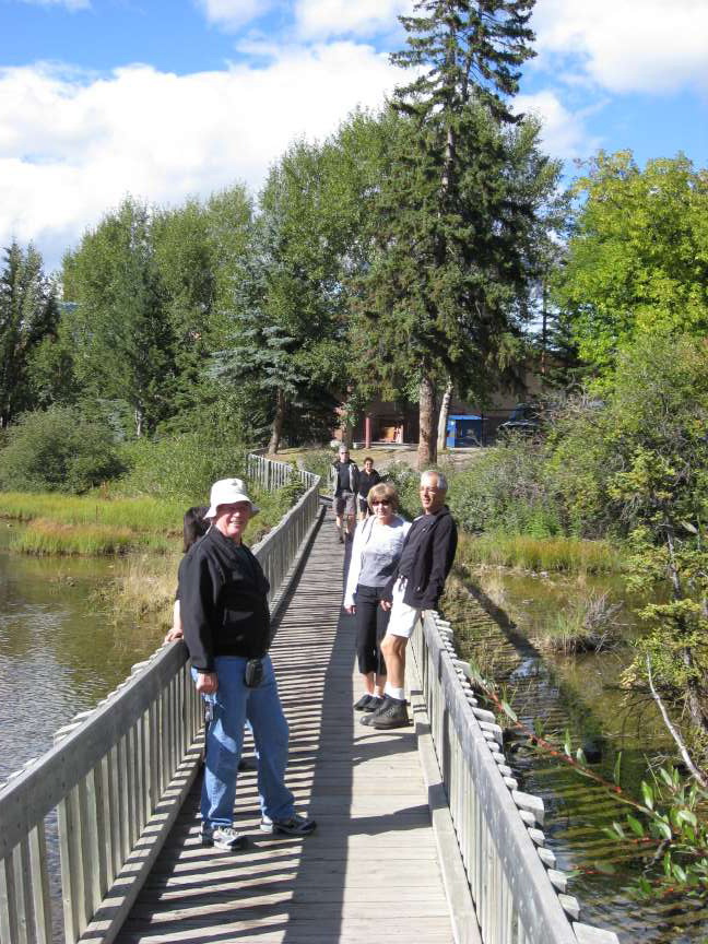 We drove from Golden up to Lake Louise where we split up the group. Adam, Allan, Hans, Bill and Marcia rode to Canmore and we went up to the green lake and walked down to one end for great views and pictures at Lake Louise. The weather was partly sunny and then we walked back and rode to the Baker Creek cabins to check in. We bought some groceries and Tom and I cooked Lasagna, soup and salad then we stocked up a fire pit and told stories. There was a trail nearby and a creek so a nice area to stay and relax. Internet was spotty!