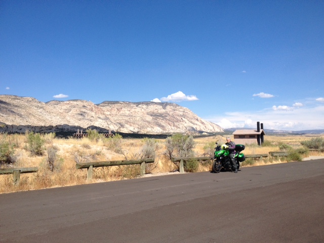 We left Tremonton, Utah and met some friends for breakfast in Ogden with great scones that they fry there like Indian fry bread. We then headed South and East on I 80 and then thru the Wasatch mountains past Park City and then further East towards the Colorado state line. Weather was great and besides being bit by a bee on the bridge of my nose all was good. Then via Dinosour we turned South to Grand Junction and arrived in the evening to contact Adam and the ST WESTOC Club. Had some drinks and the best Nachos we ever had at the Doubletree hotel, really good !