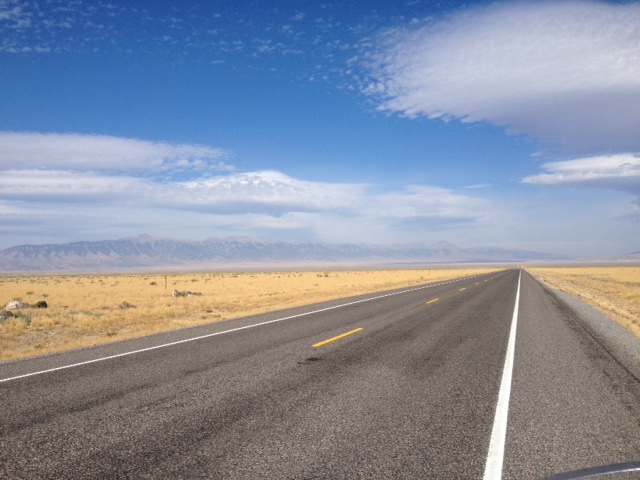 Lots of forest service trucks coming from a fire we saw to the south. A huge cloud going up from the fire like a mushroom cloud. We got to Ontario then onto the freeway via Idaho then Utah. We passed the golden spike railroad marker. We had 80 mph speed limit which is nice but hot and straight today.