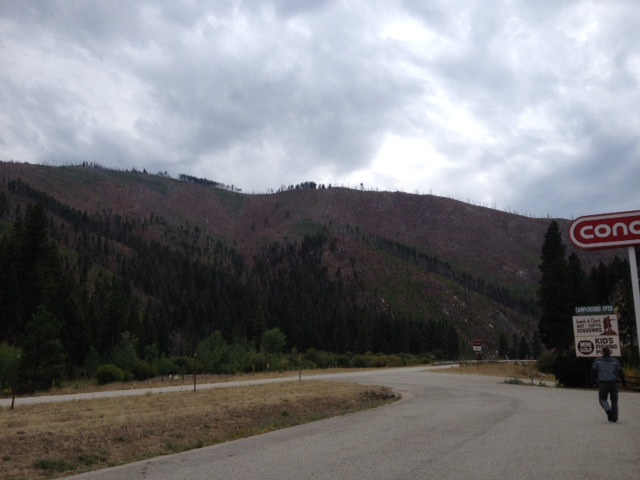 We started in Pinedale Wyoming at 41 degrees and rode to the Targhee Forest and canyons with smoke from a fire in the air. Then west to Twin Falls and up the freeway to The road to Salmon and Missoula. Great weather about in the 60s and empty roads. Some smoke also near Salmon from fires.