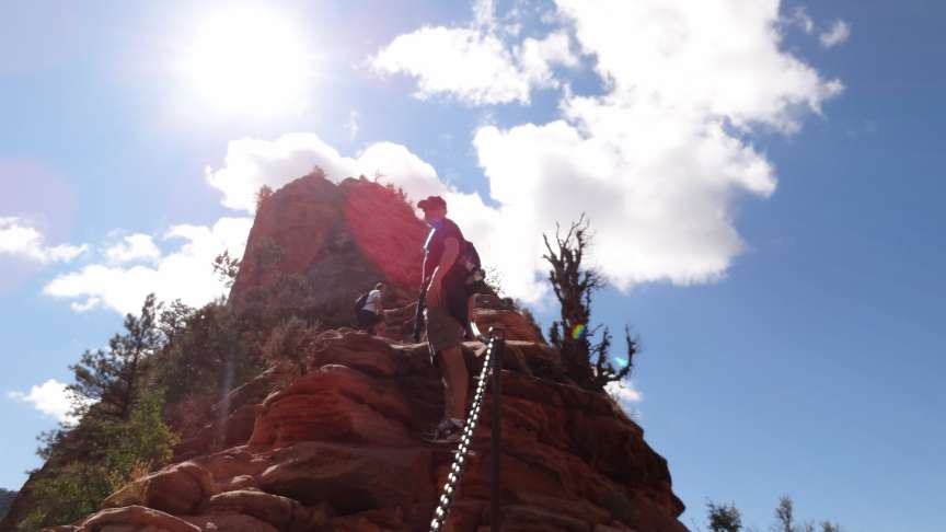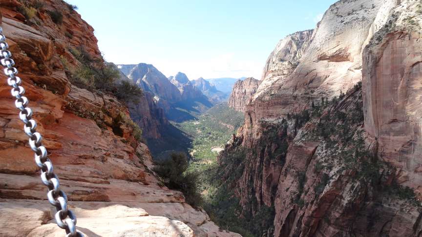 Chains to hold on to while hiking the slippery sandstone