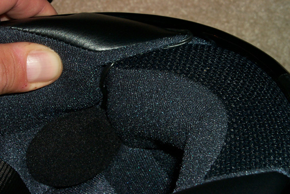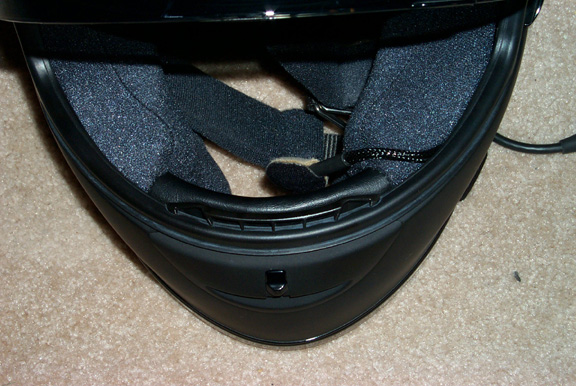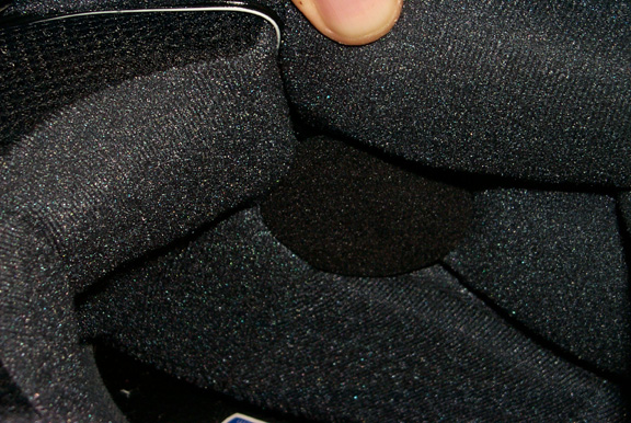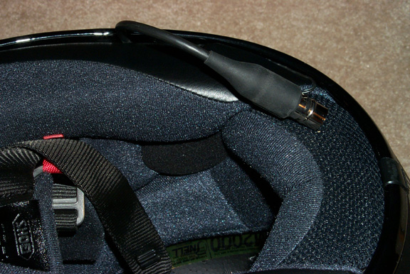 helmet. The wire was hidden in the padding seam just like the left speaker wire.