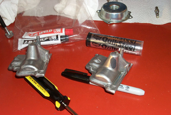 The finished product. I used Quicksteel on the inside and outside of the carb bowl on the right. It’s suppose to be OK for patching fuel tanks, but I’m thinking I’ll just use my original bowl. It was the cleanest of the four, plus I have a new drain screw for it. I just don’t trust having it in my carbs.