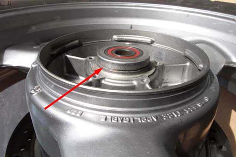 Every time the rear tire is changed, it is time to replace the three O-rings which keep the moly paste in place. Two of the O-rings are immediately found, but one is not so obvious.