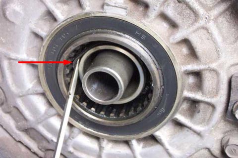 Part number 91356-MG9-003 (39.5mm x 2.4mm) is the elusive third one. It is found in the final drive, where the final driven flange splines mate up to the ring gear splines. In the picture, a small screwdriver is shown stretching the O-ring a bit. | ![]() |