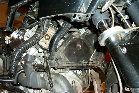 As Jeff Bertrand said, the cover can be removed with a ‘little’ cursing and prying without removing the clutch cover. Prying with a screw driver as shown just ‘barely’ allows the cover to pass between the clutch cover and the bolt seen in this picture. I’ll have to Dremel the cover as Jeff recommends to make it easier next time around.