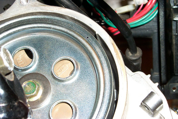 You can just make out the punch mark on the driven pulley lining up with the mark on the case.