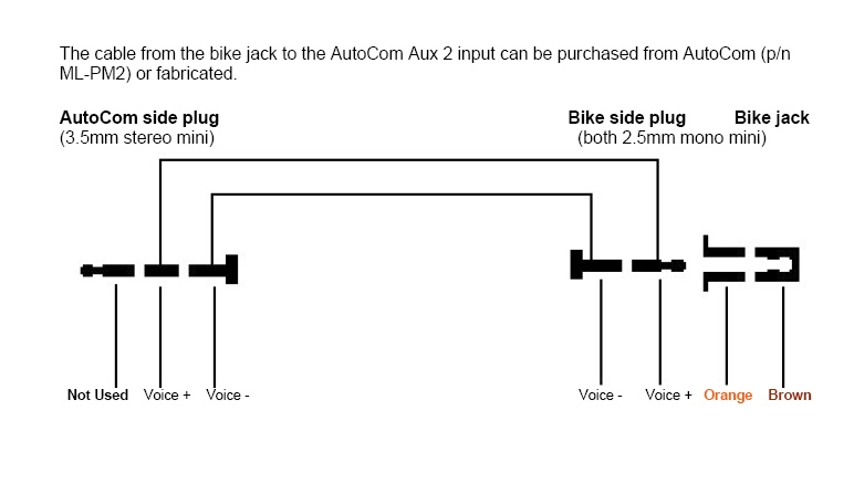 The following diagram shows the Autocom AUX2 pinout. The ‘Not Used on the Autocom (left side on the diagram below), is actually the microphone! That’s why this port, AUX2, is used for the phone interface on Pro-M1 units.