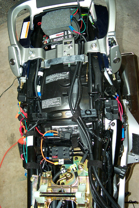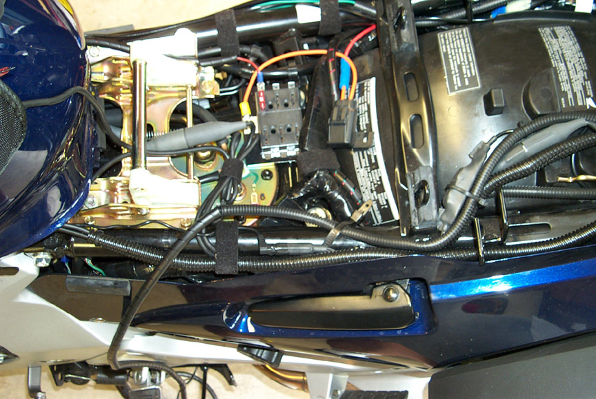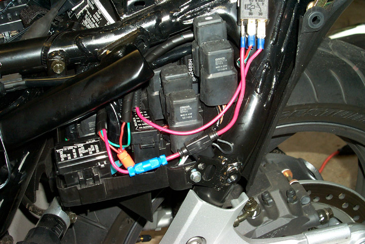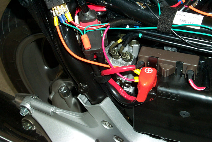 Power directly from battery, through the fuse shown, and then through the relay in the top right.