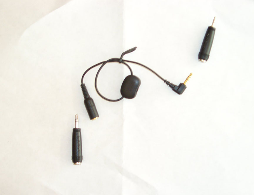 Cable I used to hook my Palm Treo 700W to the Autocom. The output from the phone is such that the volume is too loud. The volume control is Radio Shack part number 42-2559. The 2.5mm to 1/8″ adapters, 274-373 & 274-397.