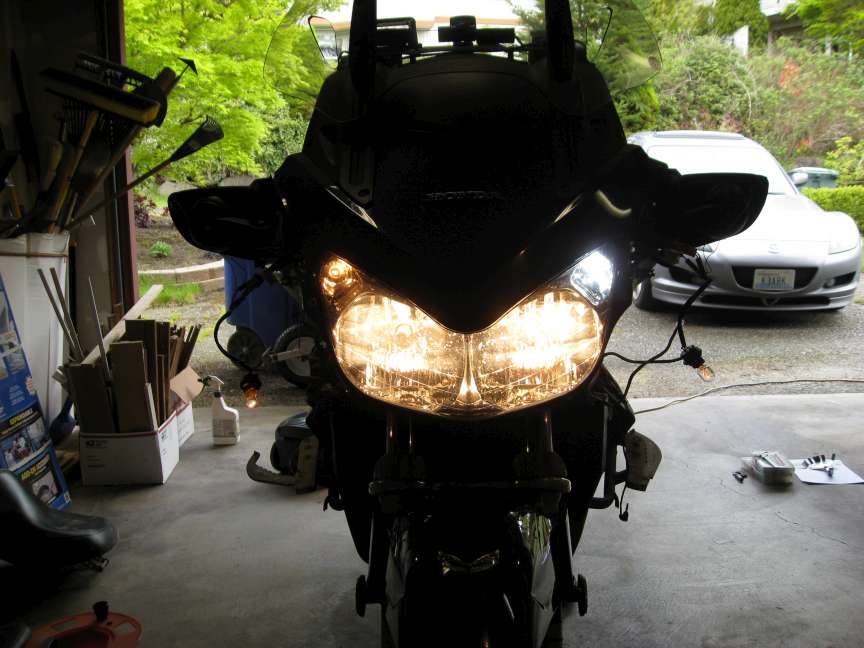 Updated 4/14/2007: Finally gave up and reinstalled the stock bulbs. Too much heat for LEDs in the headlight housing. Too bad. I really liked the look of the LED bulbs. I had the same issues trying there in my Mazda RX8.