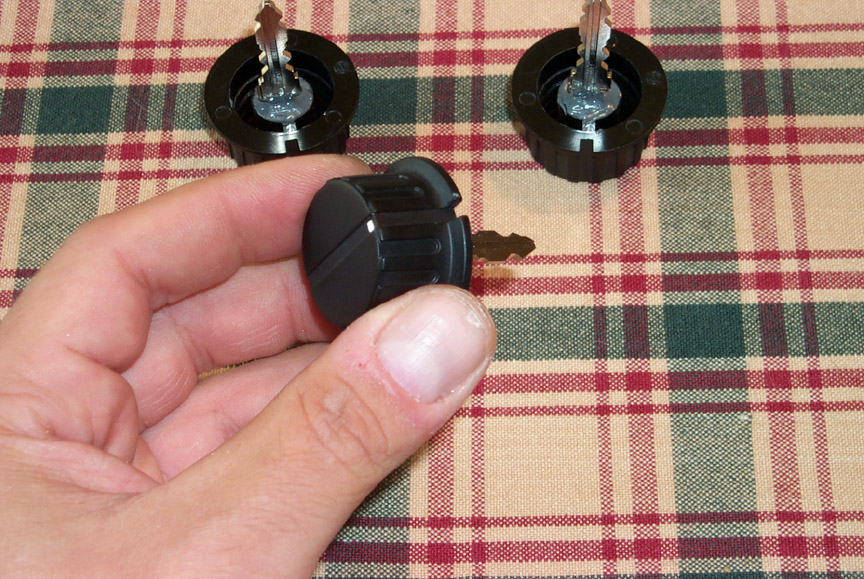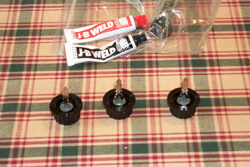 After cutting the top off the keys I mounted them in these knobs from Radio Shack and glued them with J-B Weld for good measure.