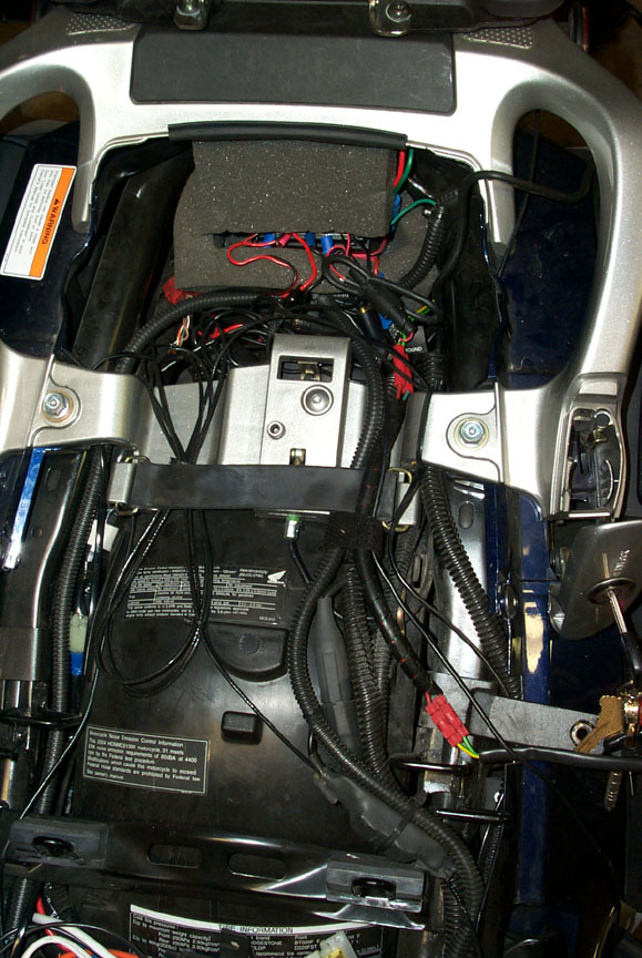 The topbox mounting rack was ground my antenna mount and inducing ground loop noise. I used nylon bolts and washers to isolate the rack from the frame. This eliminated the ground loop noise from the radio system.