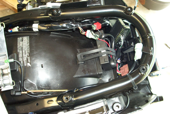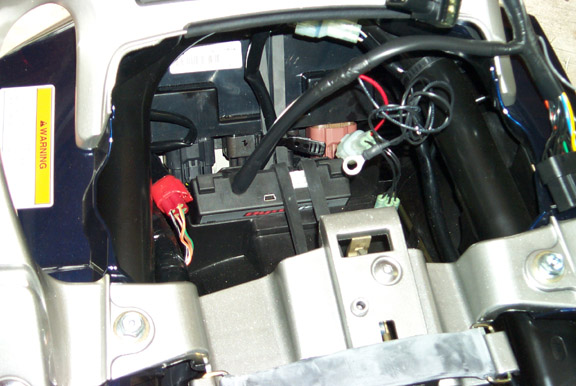 Everything in place. The other Power Commander plug is seen plugged into the “service plug”.
