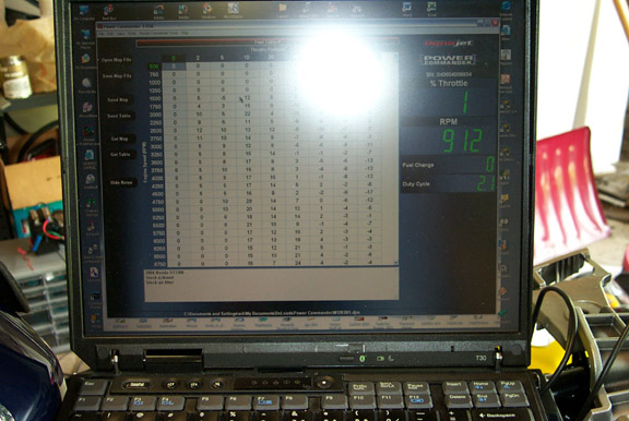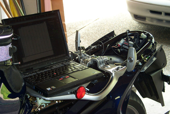The bike is started and you can see rpm’s displayed on the laptop screen.