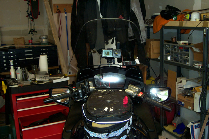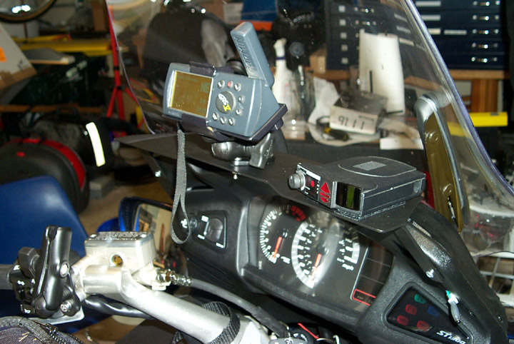 Garmin GPS V 7/18/2004 GPS V centered on shelf. Short RAM arm attached to RAM ball mount attached to shelf.
