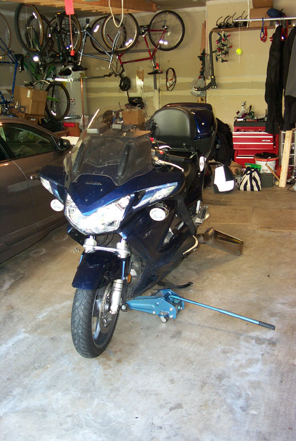 I put my bike lift under the rear to insure the bike couldn’t tip backwards.