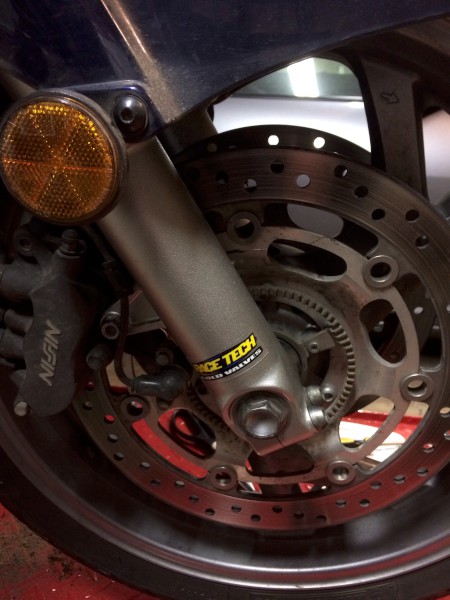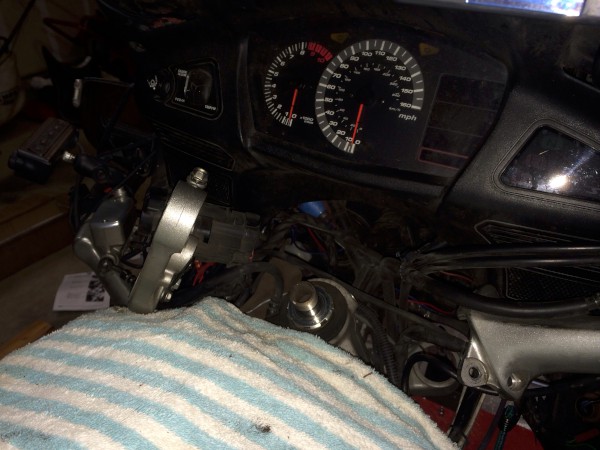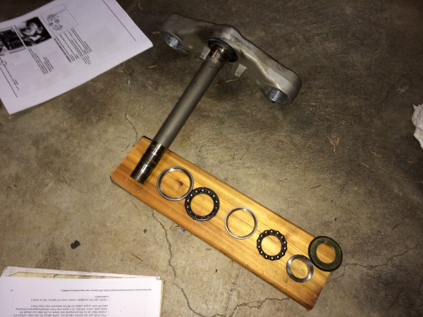 I actually had some waterproof grease in the garage so I greased up the bearings and put it all back together to the point I could torque the assembly. I used a method I read about on ST-Owners. I guess it was from another Honda model that comes with tapered roller bearings. I torqued the assembly to 22 Ft-lbs and twisted everything back and forth a bunch. Then I set the torque back to zero, then up to 5.5 Ft-lbs. That’s a little tighter than “finger tight” as was recommended in something else I read. I figure it will probably loosen up after a few miles.