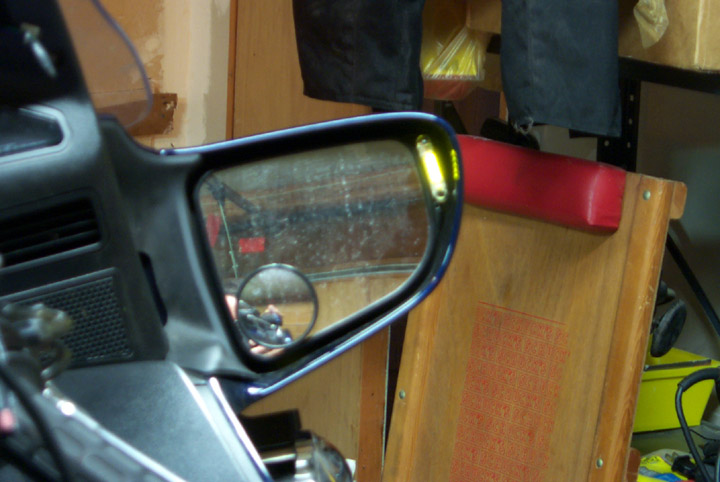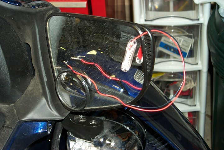 I routed the wires as shown through the holes in the mirror support.