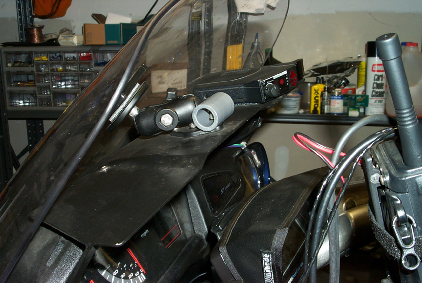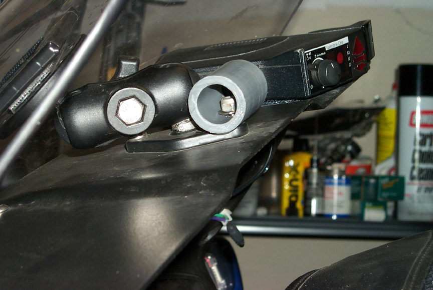 I got this mounting idea from Ben Timms. 3/4″ PVC pipe attached to the bolt mounting my RAM mount.