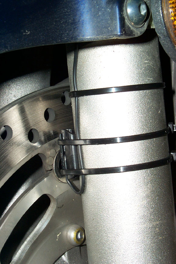 as shown here on the left brake rotor. The Sigma pickup is zip tied to the fork tube.