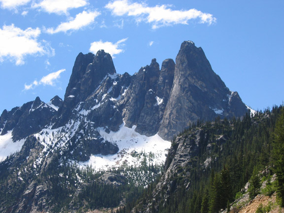 East of Washington Pass, looking west. The hairpin turn, visible in the lower left corner, is where the crash occurred.