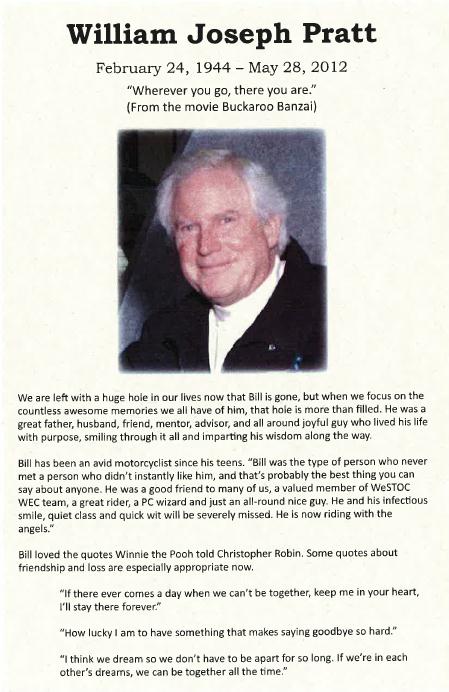 Later in the day Bill was taken to a local hospital after feeling ill. He passed away a few days later. Godspeed Bill…