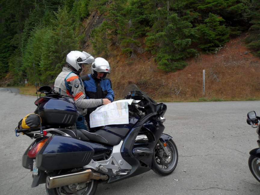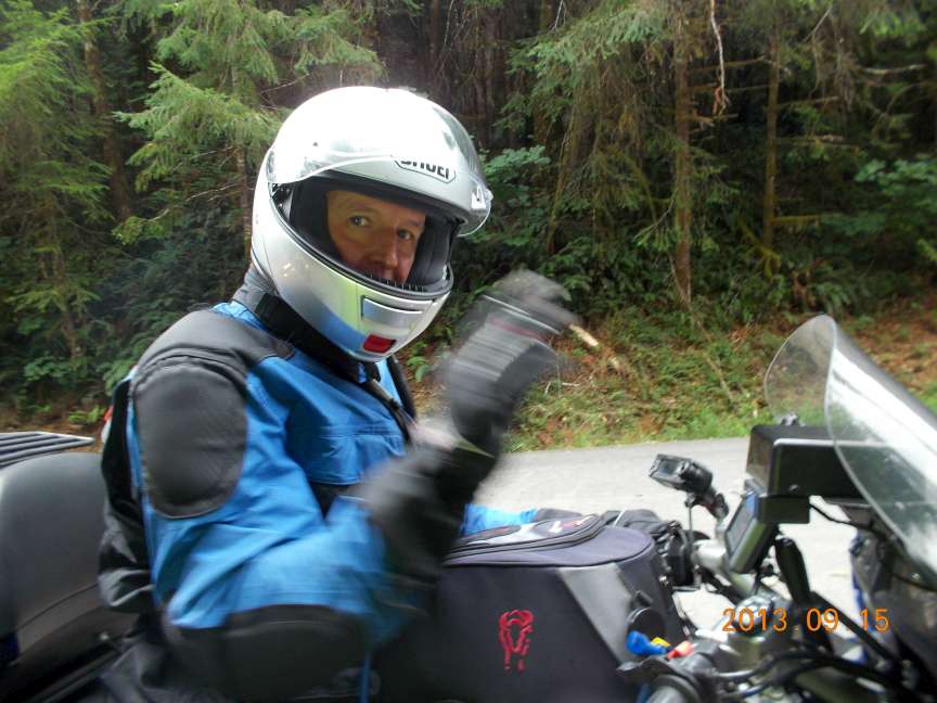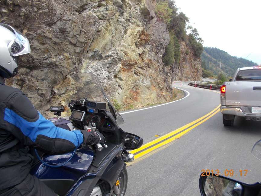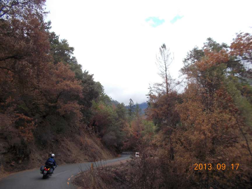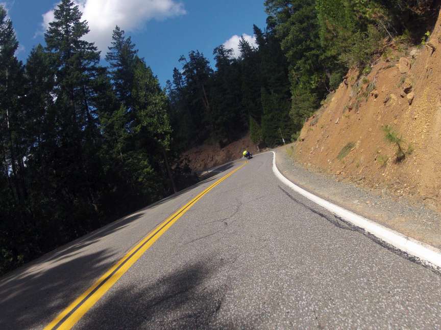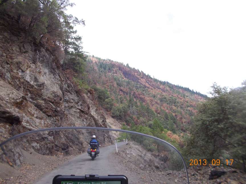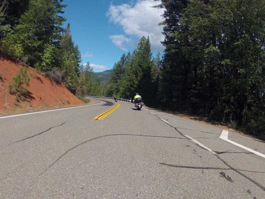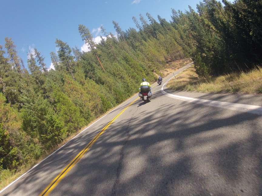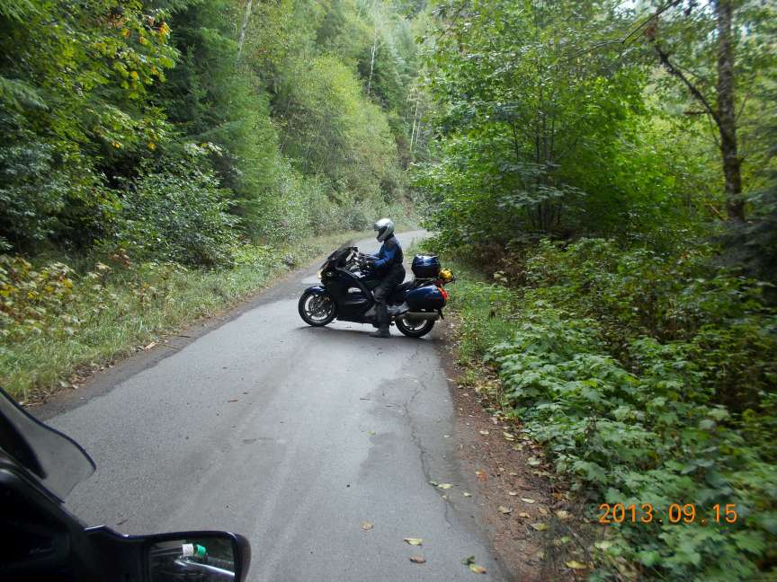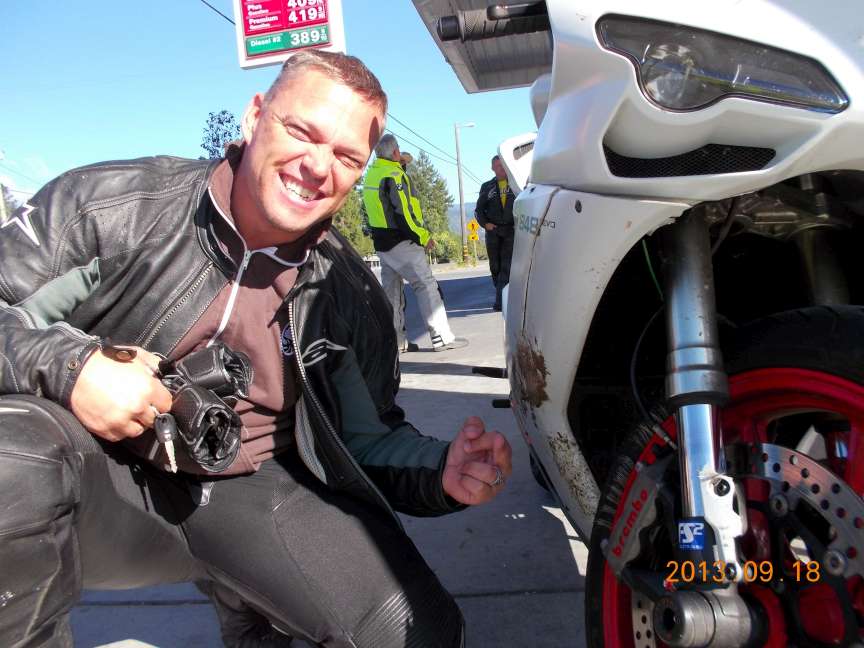 We met this Ducati rider and his buddy at a gas station. He hit a deer the day before. He didn’t go down, and the deer didn’t make it. 🙂 Missing front fender, cracked fairing.
