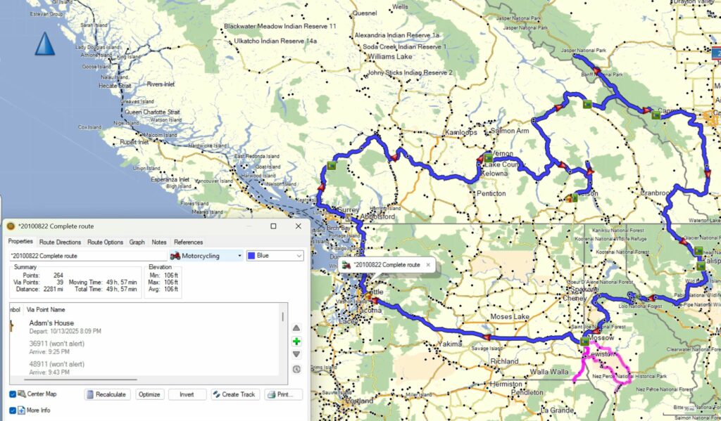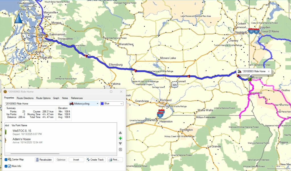 My routes for WeSTOC 15 are shown below. The first 5 days of this trip was made with the Seattle Polish American Motorcycle Society (SPAMS) 2010 Trip. Link to that trip here.