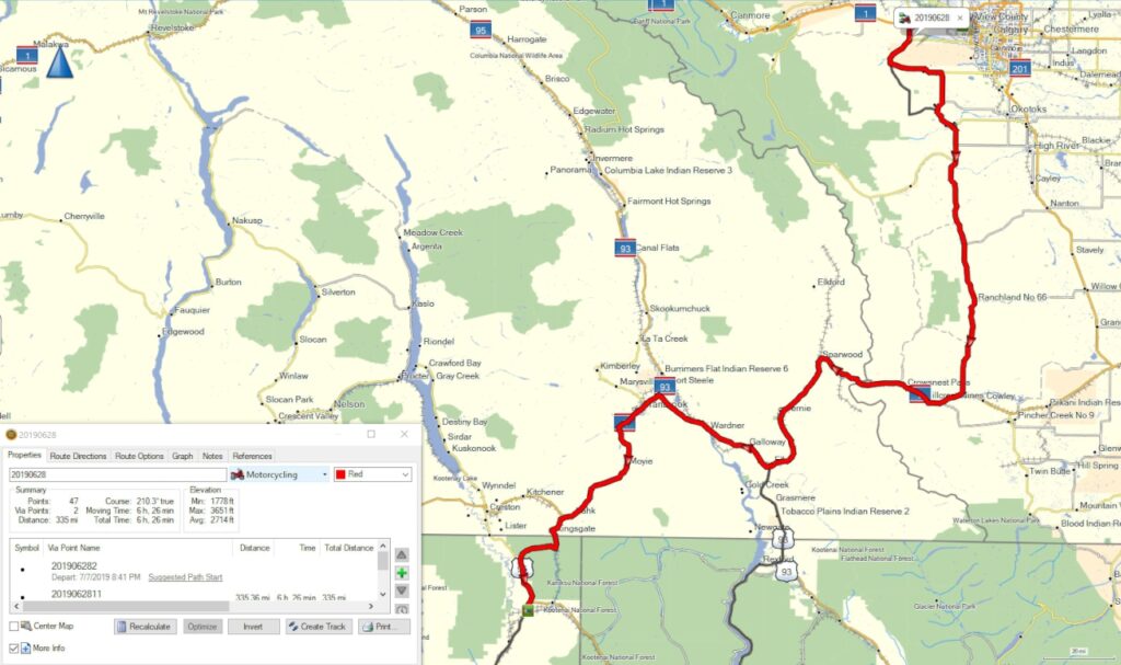 6/28/2019 Calgary, AB, Canada to Bonners Ferry, ID