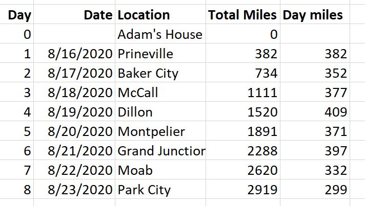 8/23/2020 Moab, UT to Park City, UT