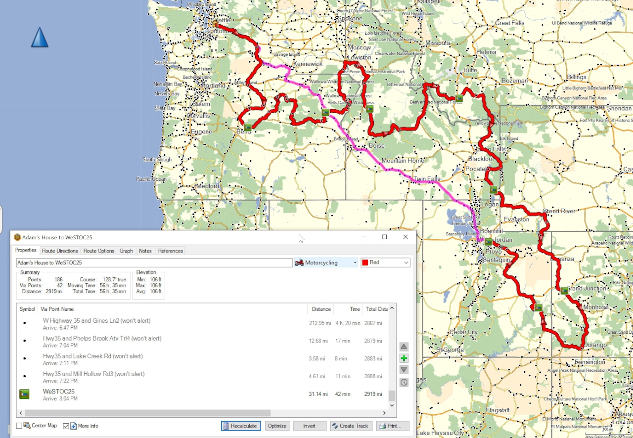 My routes for WeSTOC 25 are shown below