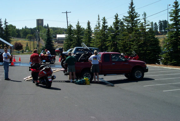 WeSTOC8 7/29/2003 Parking lot, bar & Riders meeting An ST in a pickup!?! Unloading it solo! Great ramp!! Cleaning station. Signing in. Don Feyma selling STuff. Riding hard in the ‘Quiet Bar’. David Beust, Peter & Allan. Riders meeting.